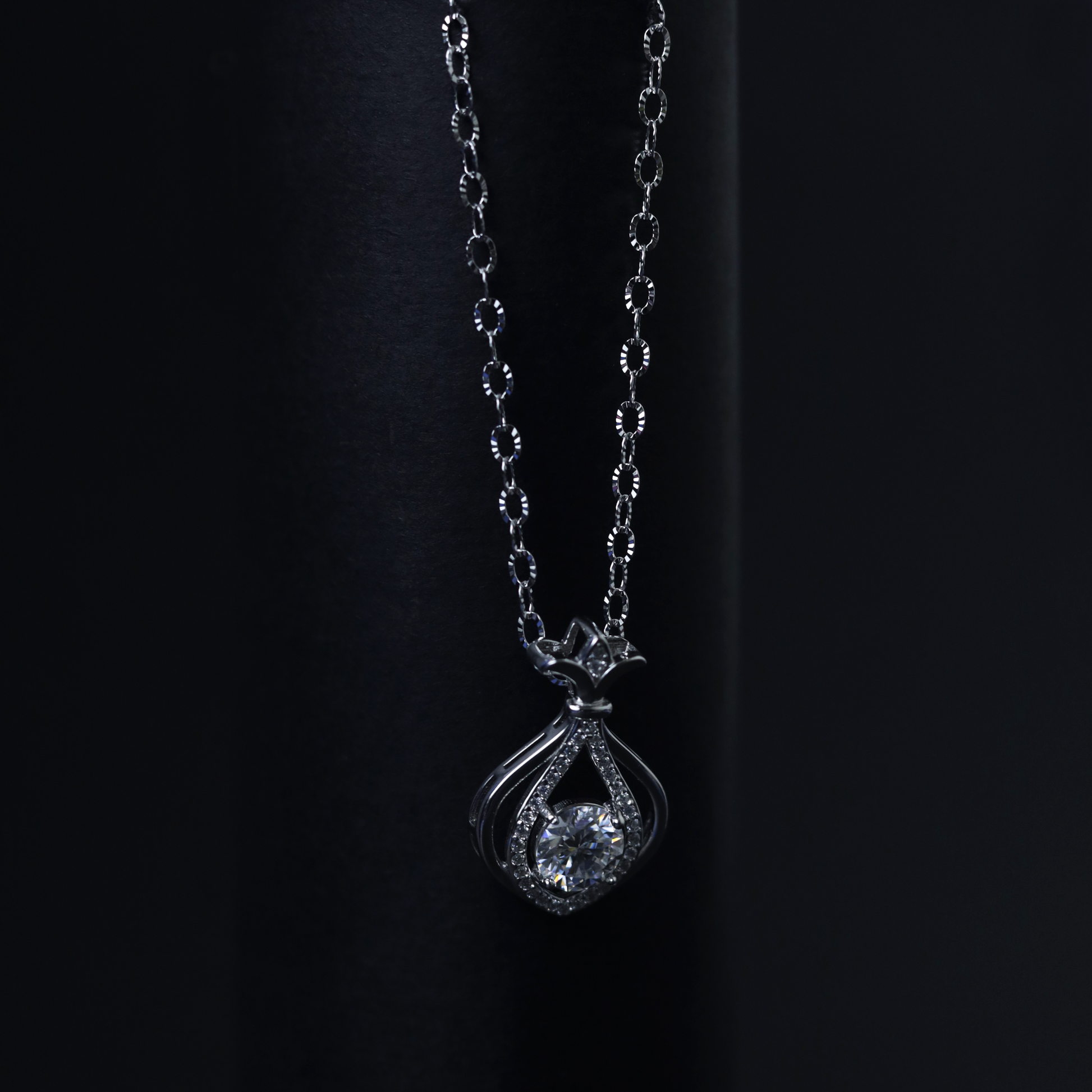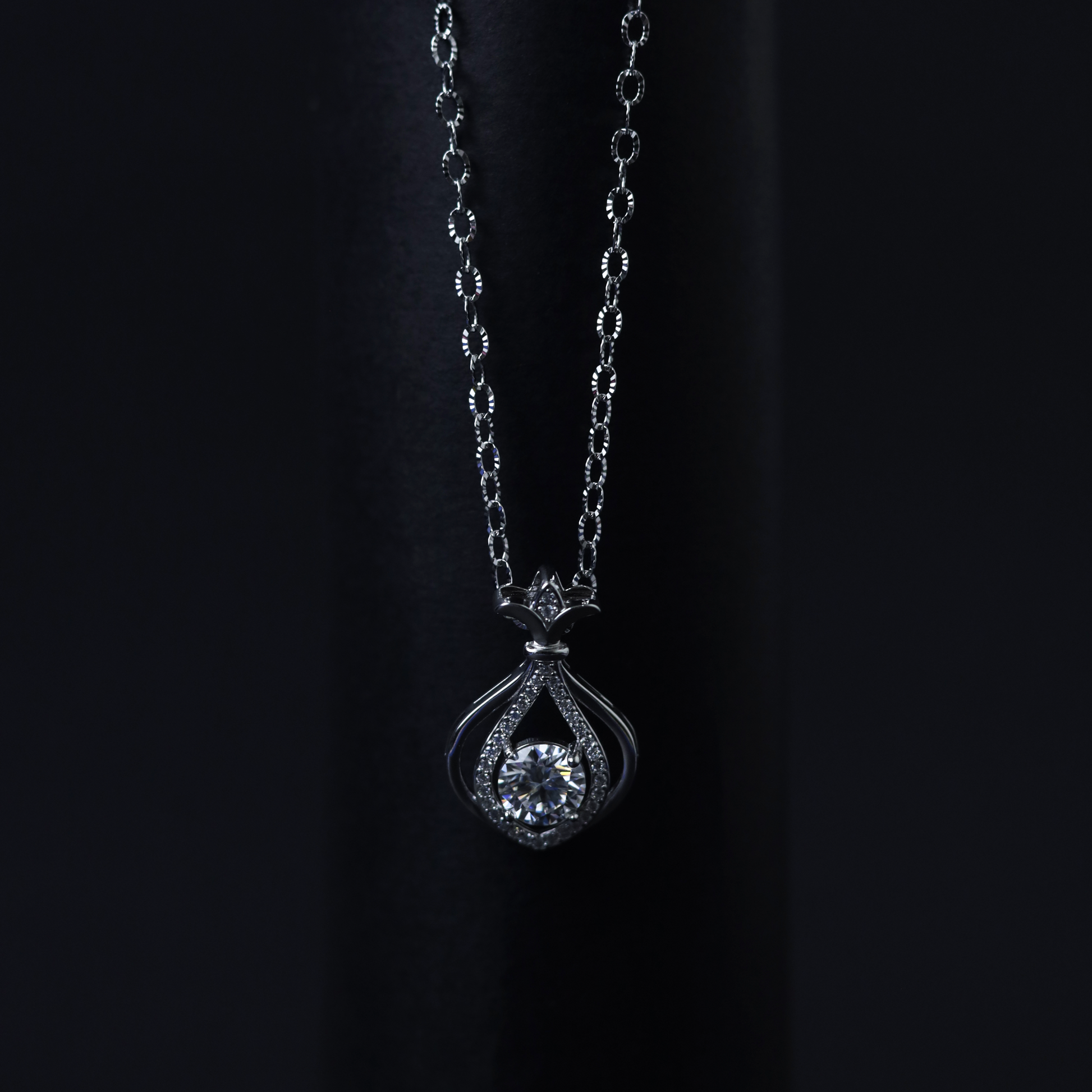 Delicate, enchanting, and beautifully crafted, the Ethereal Cage Pendant captures the allure of timeless elegance wrapped in a modern silhouette. Designed in premium silver and adorned with a radiant moissanite stone, this pendant features a unique cage-inspired form that gracefully frames the centrepiece while allowing light to dance through every angle.