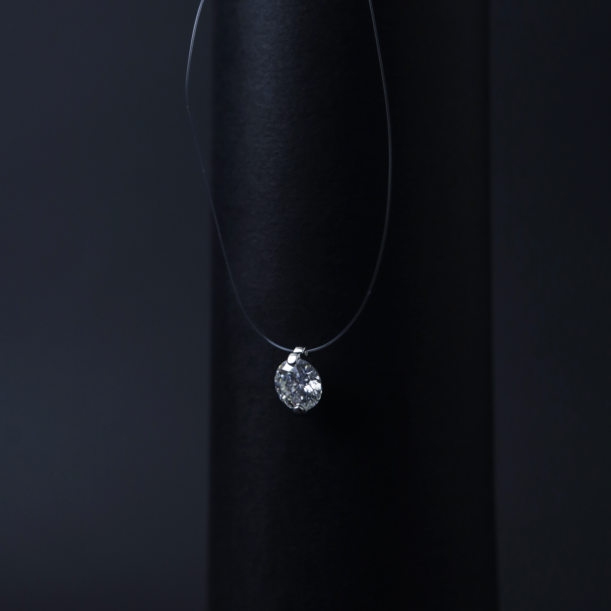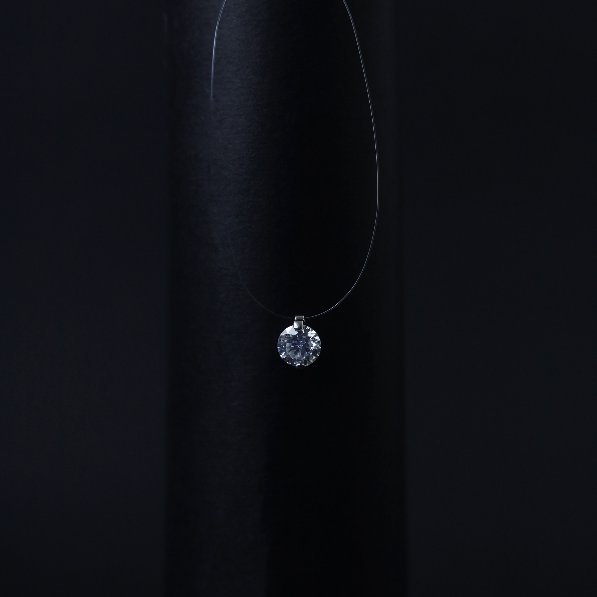 At the heart of the necklace lies a radiant round-cut moissanite, secured in a sleek setting designed to appear weightless. The nearly invisible thread enhances the floating effect, allowing the stone,s natural fire and brilliance to take center stage. Perfect for everyday wear, special occasions, or creating a soft, ethereal statement, this necklace embodies understated sophistication.
