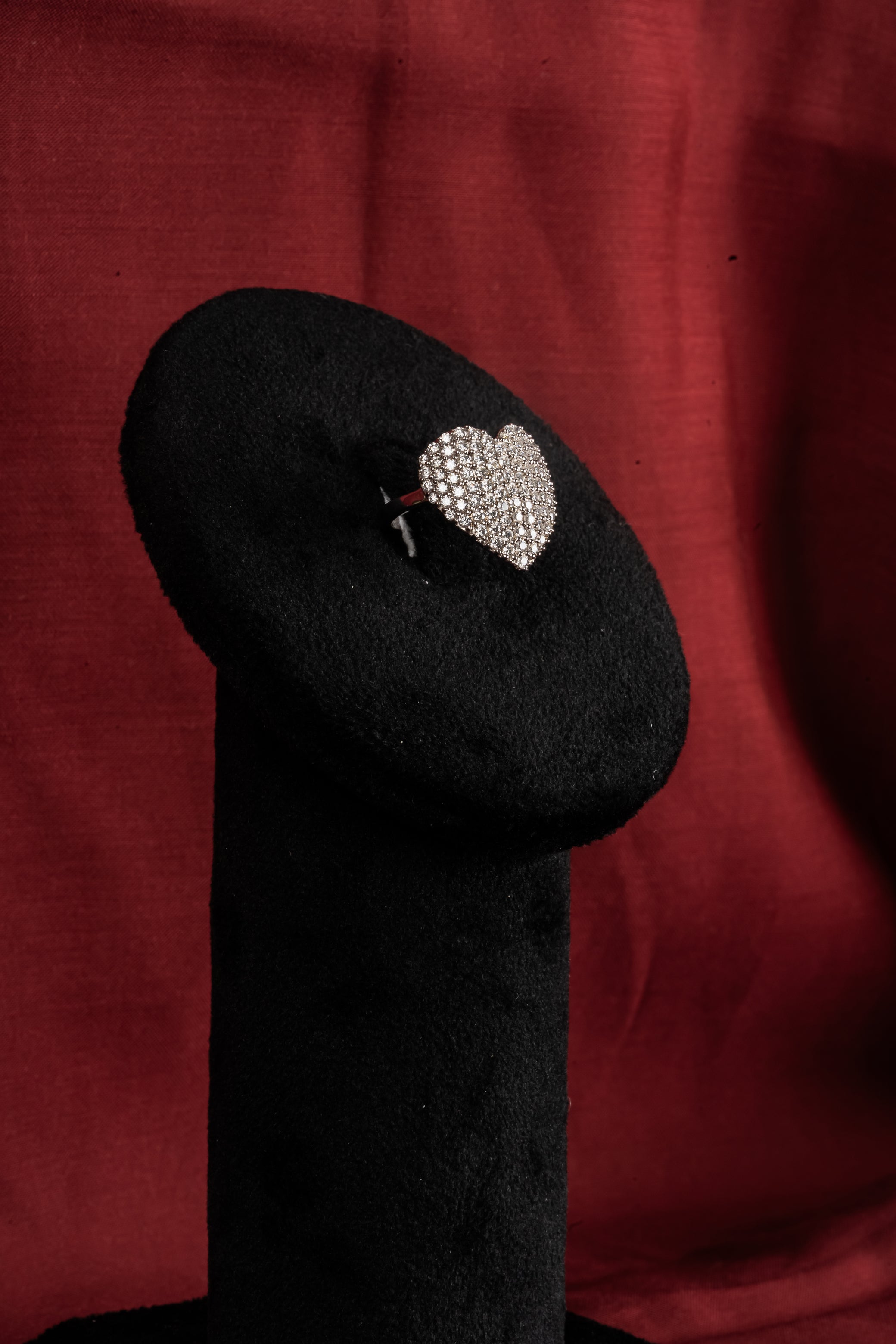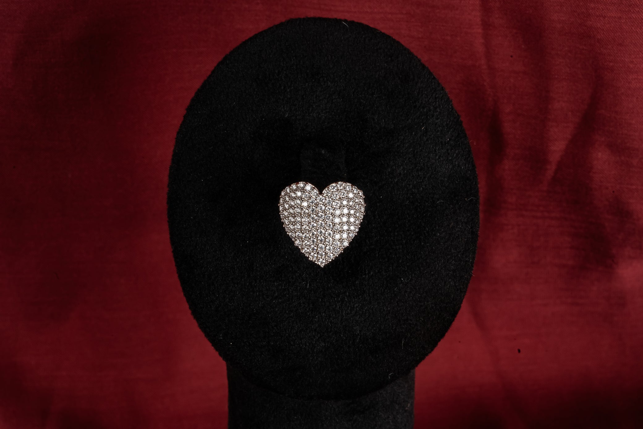 A heart filled completely with Pave stones: no hollow centers, no negative space, just solid fire in a recognizable shape. The coverage means it catches light from every angle, the classic silhouette means it never feels too young. Valentine's dinners and regular Tuesdays, because love doesn't need a special occasion.