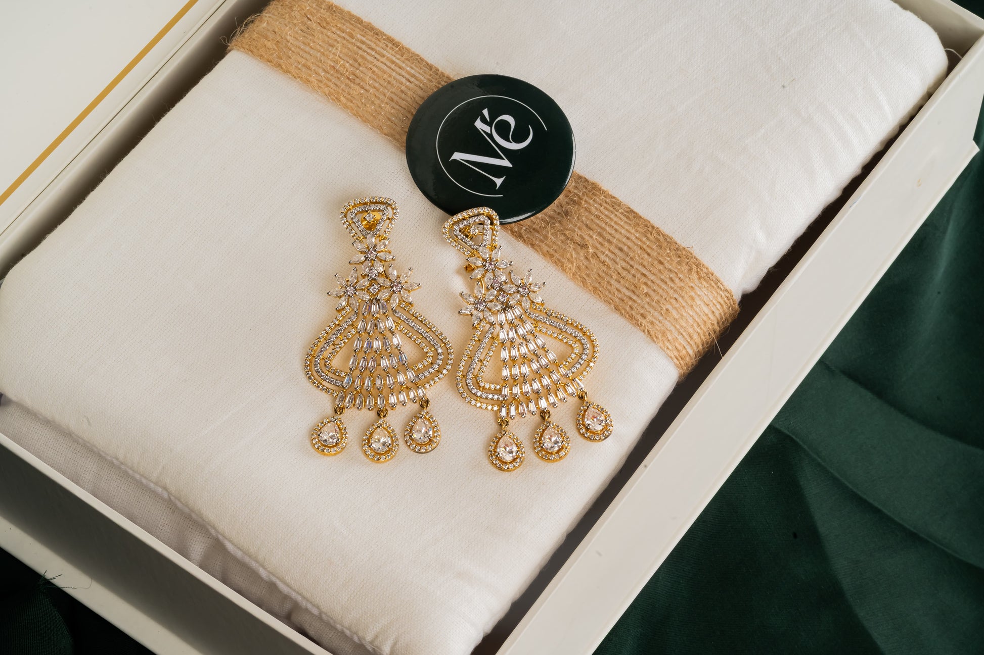 Three pear-shaped drops hang from an architectural structure of mixed metals and geometric lines: this is the earring for sangeets and milestone birthdays. The two-tone construction means it works with both your silver and gold pieces. Heavy on impact, surprisingly light on your ears. The pair they'll ask about.